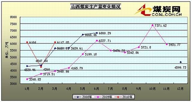 3月份,全國(guó)主要煤炭產(chǎn)區(qū)原煤產(chǎn)量均呈較快增長(zhǎng)勢(shì)頭,增幅多在兩位數(shù)。統(tǒng)計(jì)數(shù)據(jù)顯示,3月份,山西、內(nèi)蒙、陜西原煤產(chǎn)量依次位列全國(guó)前三,分別完成原煤產(chǎn)量6112萬(wàn)噸、6064萬(wàn)噸、2712萬(wàn)噸,分別同比增長(zhǎng)60.76%、26.24%以及18.98%。3月份,以上三省原煤產(chǎn)量占全國(guó)比重達(dá)到53.2%,與1、2月份相比,分別提高0.7和0.2個(gè)百分點(diǎn),煤炭生產(chǎn)的區(qū)域集中度持續(xù)提高,山西任然居于首位。比二月原煤生產(chǎn)多1852.5萬(wàn)噸
